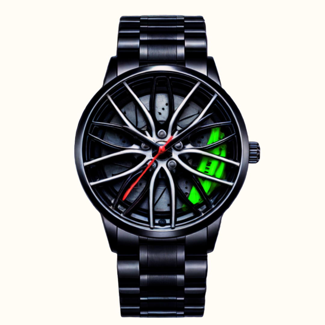 Avec son cadran inspiré des jantes de voiture sportives, cette montre ne passe jamais inaperçue.
